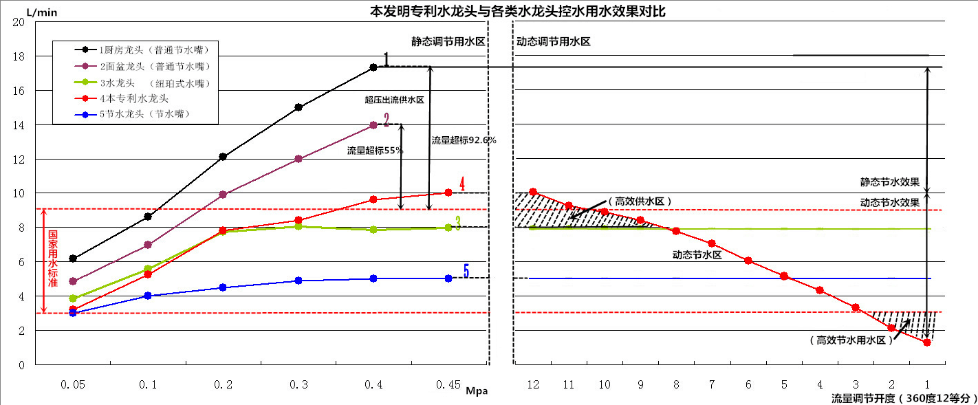 比目前市場(chǎng)上最普遍恒壓恒流的陶瓷閥芯水龍頭有更廣泛的適用性和節(jié)水性,與舊式水龍頭相比,可節(jié)水30%—80%,出水量大、節(jié)約用水時(shí)間、功能全、適用性廣、節(jié)水率高。達(dá)到了滿意的創(chuàng)新效果。下圖顯示了創(chuàng)新效果的前后比較。